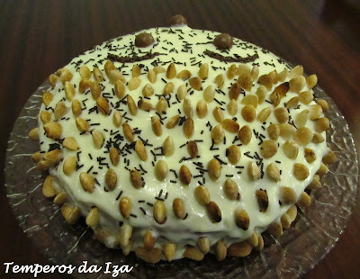Entretanto faça a cobertura do bolo: Misture todos os ingredientes com uma vara de arames e leve ao lume mexendo sempre até ferver.