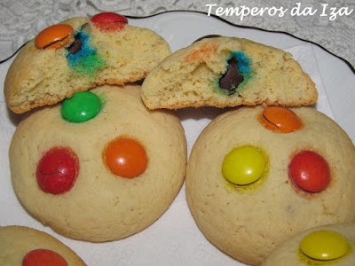 Com as mãos molde pequenos bolos, insira no interior 2 a 3 M&M, e no topo de cada bolinho coloque também mais 2 a 3.
