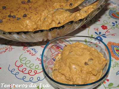 Por fim adicione também as pepitas de chocolate e volte a envolver delicadamente.