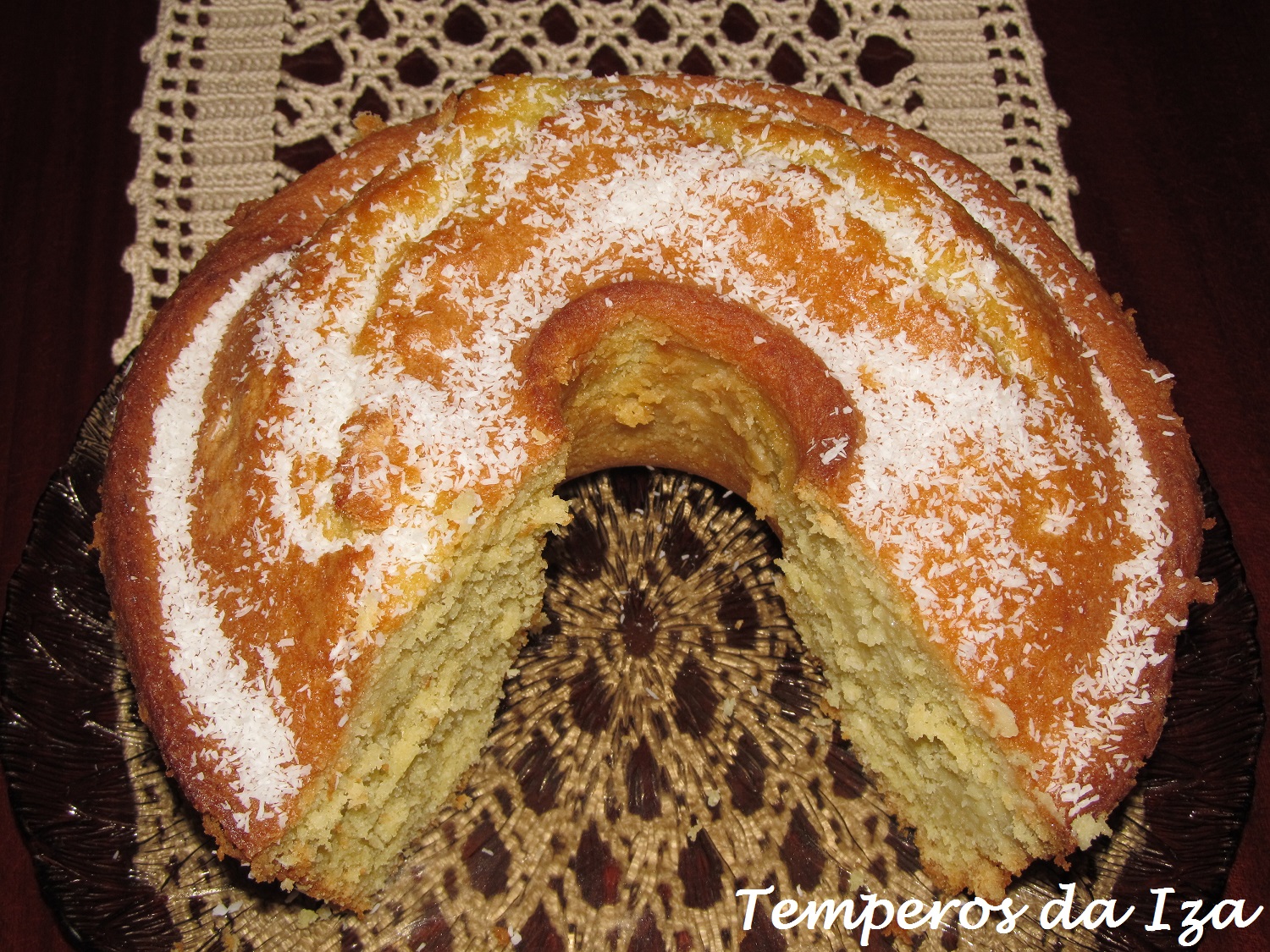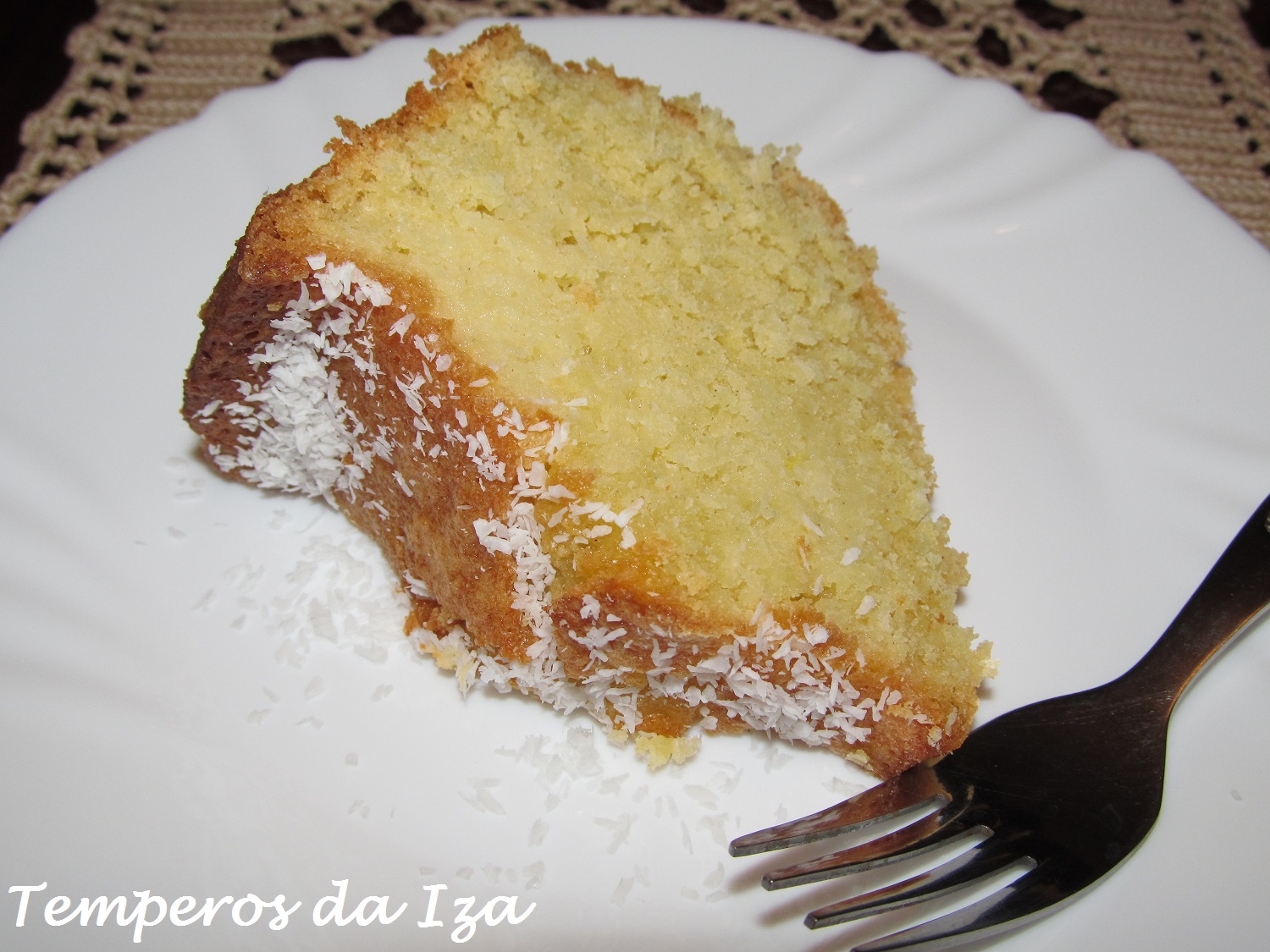 Sirva o bolo polvilhado com açúcar em pó (não coloquei).